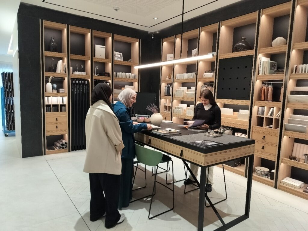 We doen ook aan een verscheidenheid bedrijfsbezoeken. Zo zijn we al naar verschillende showrooms gaan bekijken. Bij Cosentino Antwerpen werd dit gecombineerd met een educatieve workshop rondom moodboards en nieuwe trends!